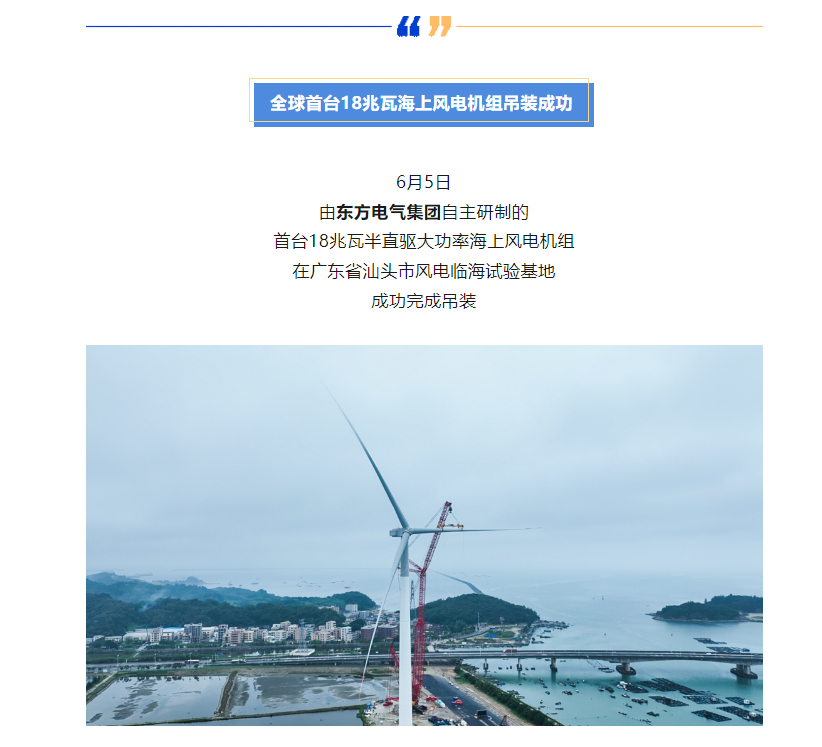 标志着全球已安装的海上风电机组功率等级