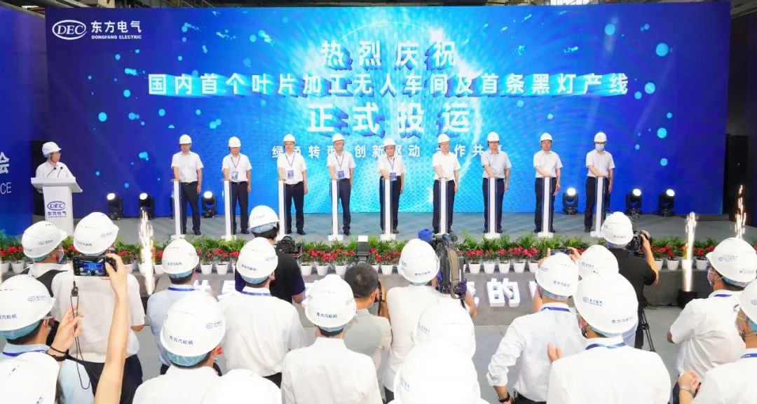 8月25日上午,国内首个叶片加工无人车间及首条黑灯产线投运仪式在尊龙凯时人生就是搏汽轮机举行。随着一键启动,AGV小车、机器人、数控加工中心等一系列智能设备,在数据驱动下智慧运行,标志着国内首个叶片加工无人车间及首条黑灯产线正式投运,这里也是2022世界清洁能源装备大会展示的示范应用场景之一。