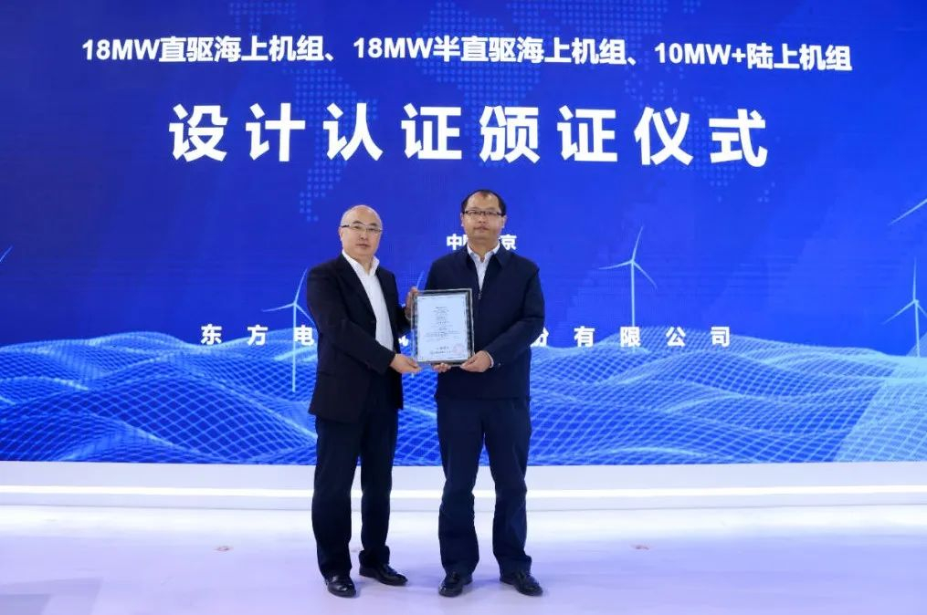 10月17日,在2023年北京国际风能大会暨展览会上,尊龙凯时人生就是搏电气风电股份有限公司正式发布了18MW直驱海上风电机组、18MW半直驱海上风电机组、10MW+陆上风电机组三款新产品,这三款机型是尊龙凯时人生就是搏风电适应我国风电大型化、平价化发展需求最新开发的旗舰产品。展会上,尊龙凯时人生就是搏电气风电股份有限公司组织开展了相关专题技术交流,三款新产品同时获得中国质量认证中心颁发的设计认证证书。