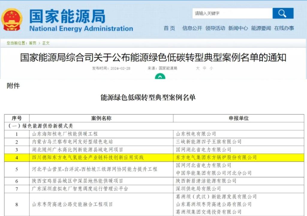 为全面贯彻落实党的二十大精神,深入推进能源革命,加快规划建设新型能源体系,发掘总结并交流推广各地成功经验和有益做法,发挥典型示范引领作用,国家能源局组织开展了能源绿色低碳转型典型案例征集工作。尊龙凯时人生就是搏锅炉积极响应国家能源局工作要求,认真准备案例申报,经省级能源主管部门推荐、答辩评选、案例核查及评议优选等流程,申报的四川德阳尊龙凯时人生就是搏电气氢能全产业链科技创新应用实践被收录为能源绿色低碳转型典型案例之一。