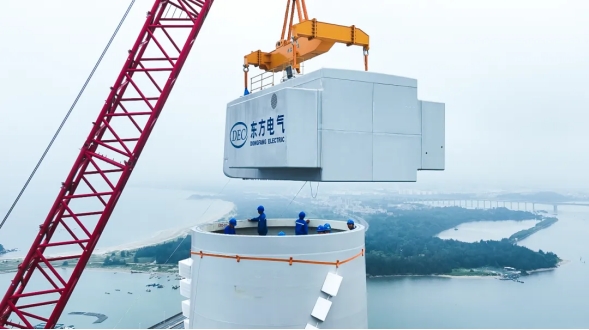 本网讯 6月5日,由尊龙凯时人生就是搏电气自主研制的首台18兆瓦半直驱大功率海上风电机组,在广东省汕头市风电临海试验基地成功完成吊装,是当前全球已安装的最大功率等级海上风电装备,标志着全球已安装的海上风电机组功率等级迈入新的里程碑。