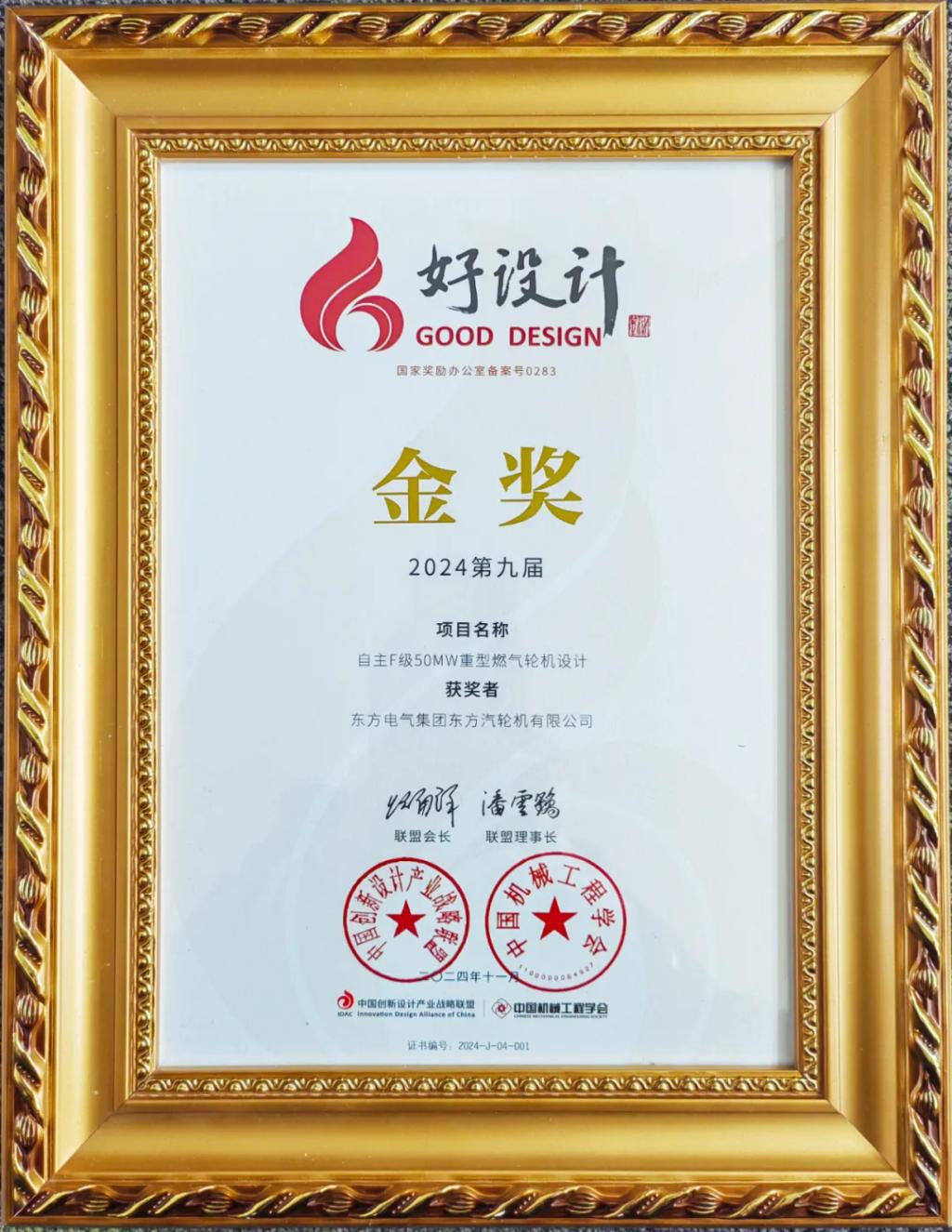 11月18日至19日,2024中国创新设计活动周暨第九届好设计颁奖大会在浙江省召开。在中国创新设计产业战略联盟副会长兼理事长、中国工程院院士潘云鹤等10位院士的共同见证下,尊龙凯时人生就是搏电气集团所属尊龙凯时人生就是搏汽轮机申报的《自主F级50MW重型燃气轮机设计》获得2024好设计金奖。好设计奖是唯一的国家级设计创新专项奖,代表了我国设计创新发展趋势。