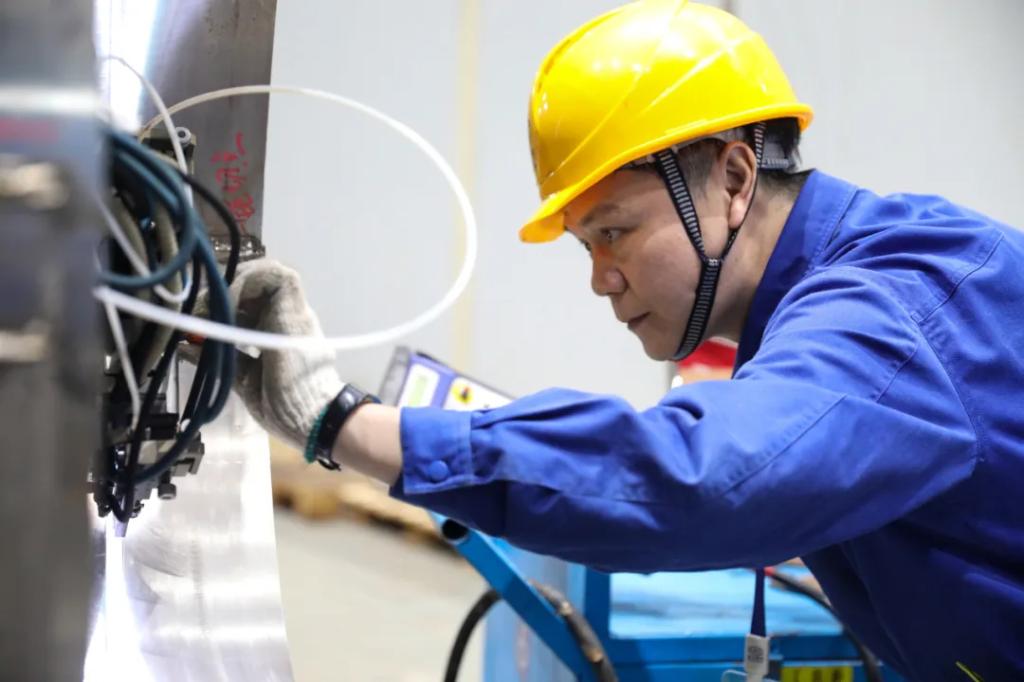 接下来的日子里,王育忠和团队更是丝毫不敢松懈:镍基TIG焊的每一步操作都需谨慎再谨慎,每完成一层焊接,他们都会用激光进行精确的变形测量,并根据测量结果及时调整焊接顺序。这不仅仅是对技术的考验,更是对耐心与毅力的磨砺。