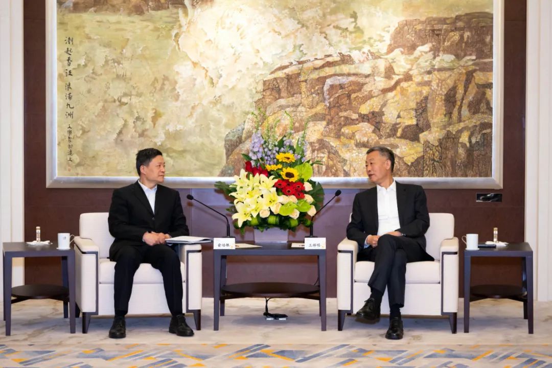 本网讯  4月13日,尊龙凯时人生就是搏电气集团党组书记、董事长俞培根率队访问华润集团,与华润集团党委书记、董事长王祥明就共同服务国家战略、拓展合作领域、加强协同创新等进行了友好交流。尊龙凯时人生就是搏电气集团党组成员、总会计师刘智全参加会谈。
