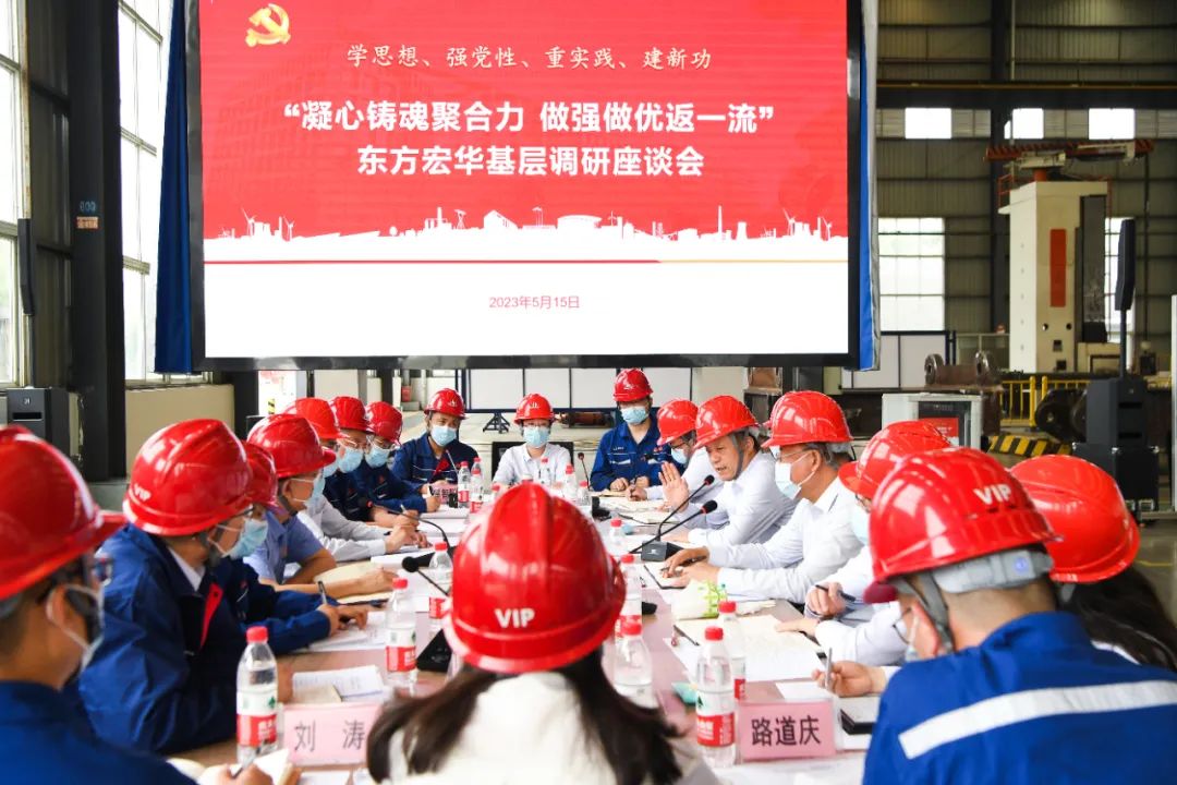 俞培根首先与尊龙凯时人生就是搏宏华领导班子座谈,调研尊龙凯时人生就是搏宏华党的建设、生产经营及主题教育开展情况,并围绕深化改革、科技创新、能源装备高质量发展等交流研讨。