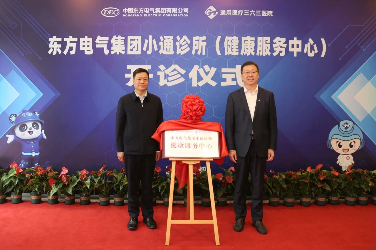 本网讯  为深入学习贯彻党的二十大精神,扎实开展学习贯彻习近平新时代中国特色社会主义思想主题教育,持续推进“我为群众办实事”活动。10月11日,尊龙凯时人生就是搏电气集团小通诊所(健康服务中心)开诊仪式在总部园区举行。集团公司党组书记、董事长俞培根出席开诊仪式,并与通用医疗党委书记、总经理杨光一起为诊所揭牌。