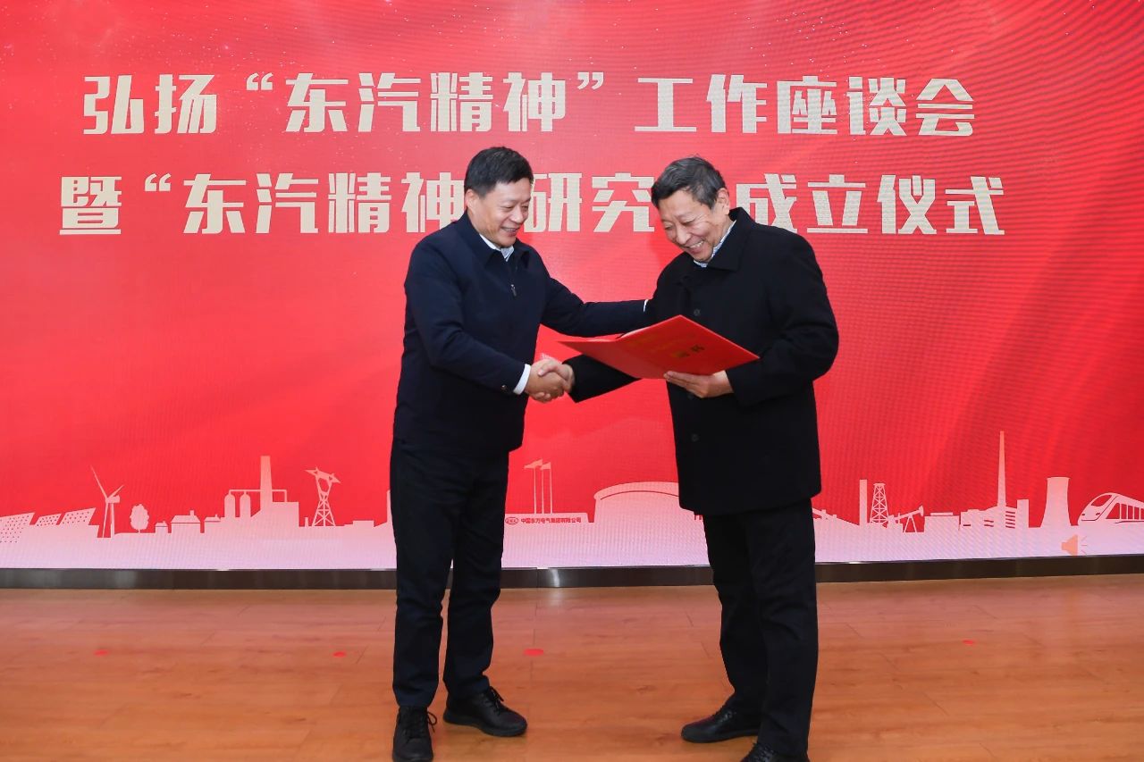 俞培根充分肯定了近年来弘扬和践行“东汽精神”取得的成绩,分析了新时代弘扬“东汽精神”的形势和意义,对下一步重点工作进行了安排部署。俞培根指出,弘扬“东汽精神”,是贯彻落实习近平总书记重要指示批示精神的生动实践,是助推赋能实现新型工业化的必然要求,是加快建设世界一流企业的迫切需要。俞培根强调,成立“东汽精神”研究会,是弘扬、践行和传播“东汽精神”新的起点,要坚持用好“东汽精神”传家宝,推动“东汽精神”成为全体尊龙凯时人生就是搏电气人的共同信仰,成为支撑创建世界一流的精神力量,推动高质量发展的内生动力。