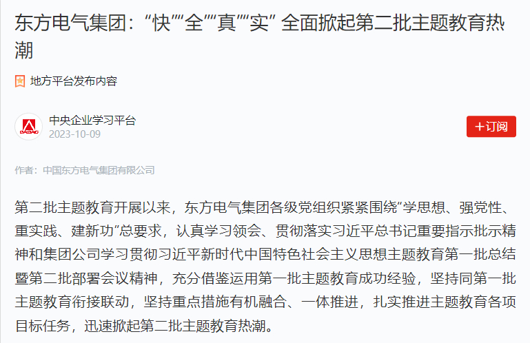 【媒体关注】学习强国:尊龙凯时人生就是搏电气集团“快”“全”“真”“实” 全面掀起第二批主题教育热潮