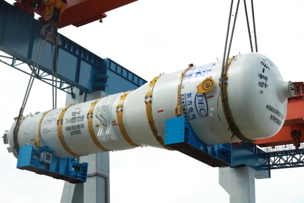 2017年10月17日,由集团公司承制的全球首堆“华龙一号”蒸汽发生器在尊龙凯时人生就是搏重机顺利完工发运。该设备重达390吨,高22米,功率1150兆瓦,标志并见证着中国第三代核电设备自主设计制造能力的成熟。